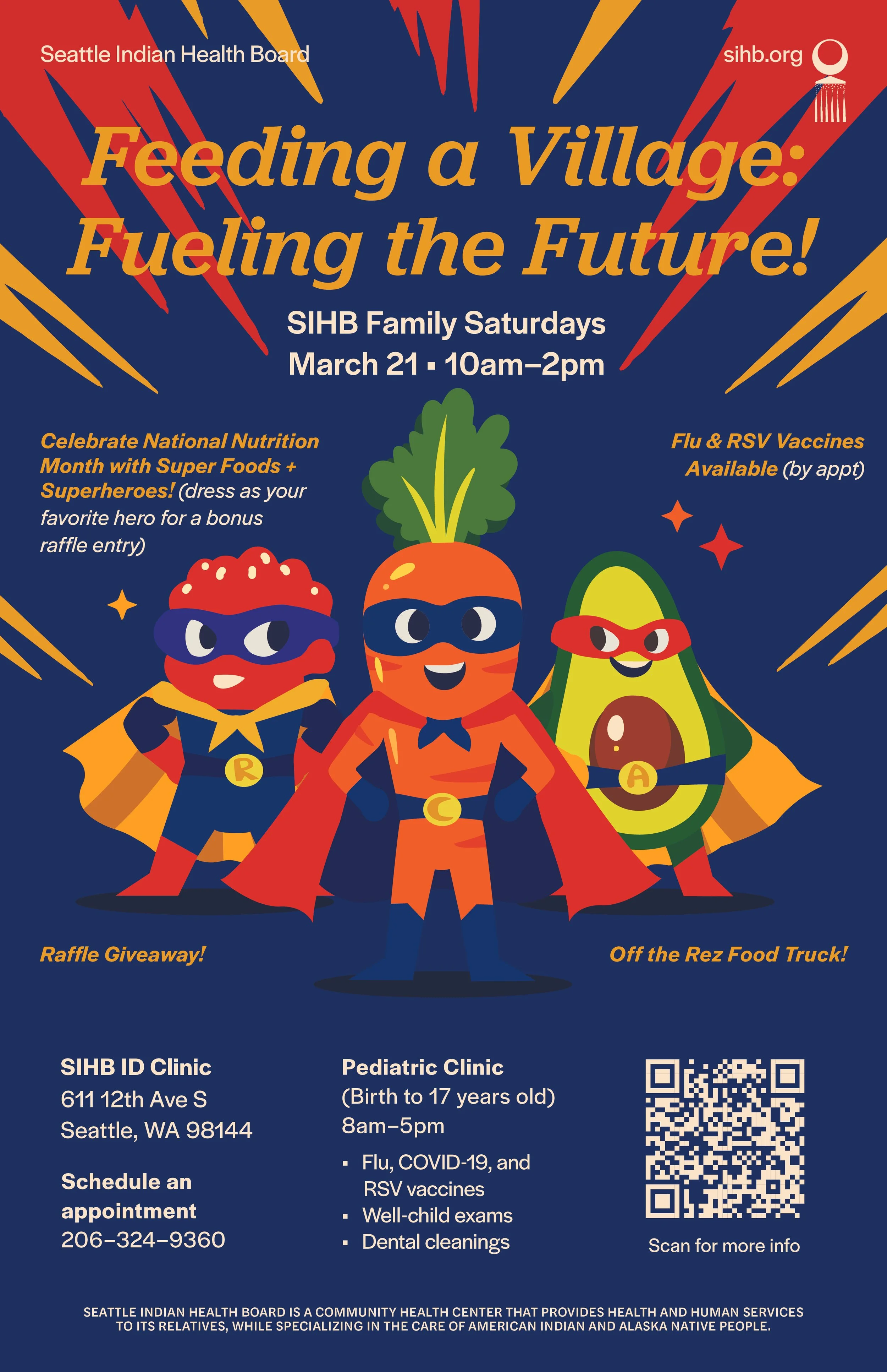 Seattle Indian Health Board (SIHB) is a nonprofit organization in Seattle that provides comprehensive health and human services, with a strong focus on caring for Native communities. SIHB hosts numerous events throughout the year, each requiring thoughtful visual communication. I design posters and digital assets to promote these events across SIHB clinics and social media platforms, ensuring the messaging is clear, culturally respectful, and community-centered.
